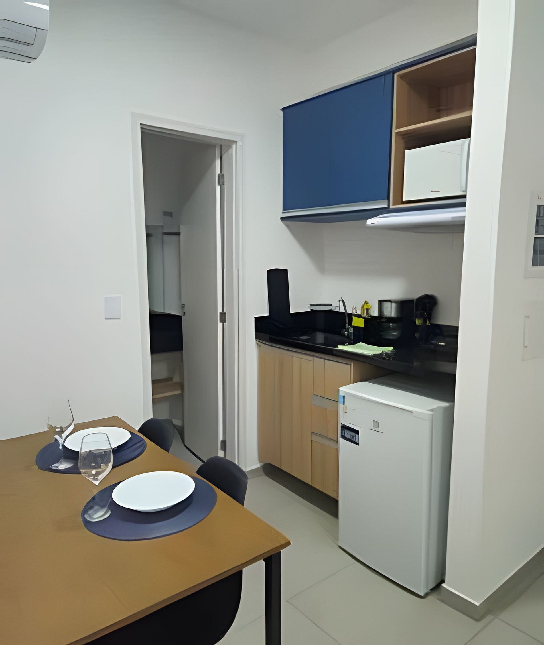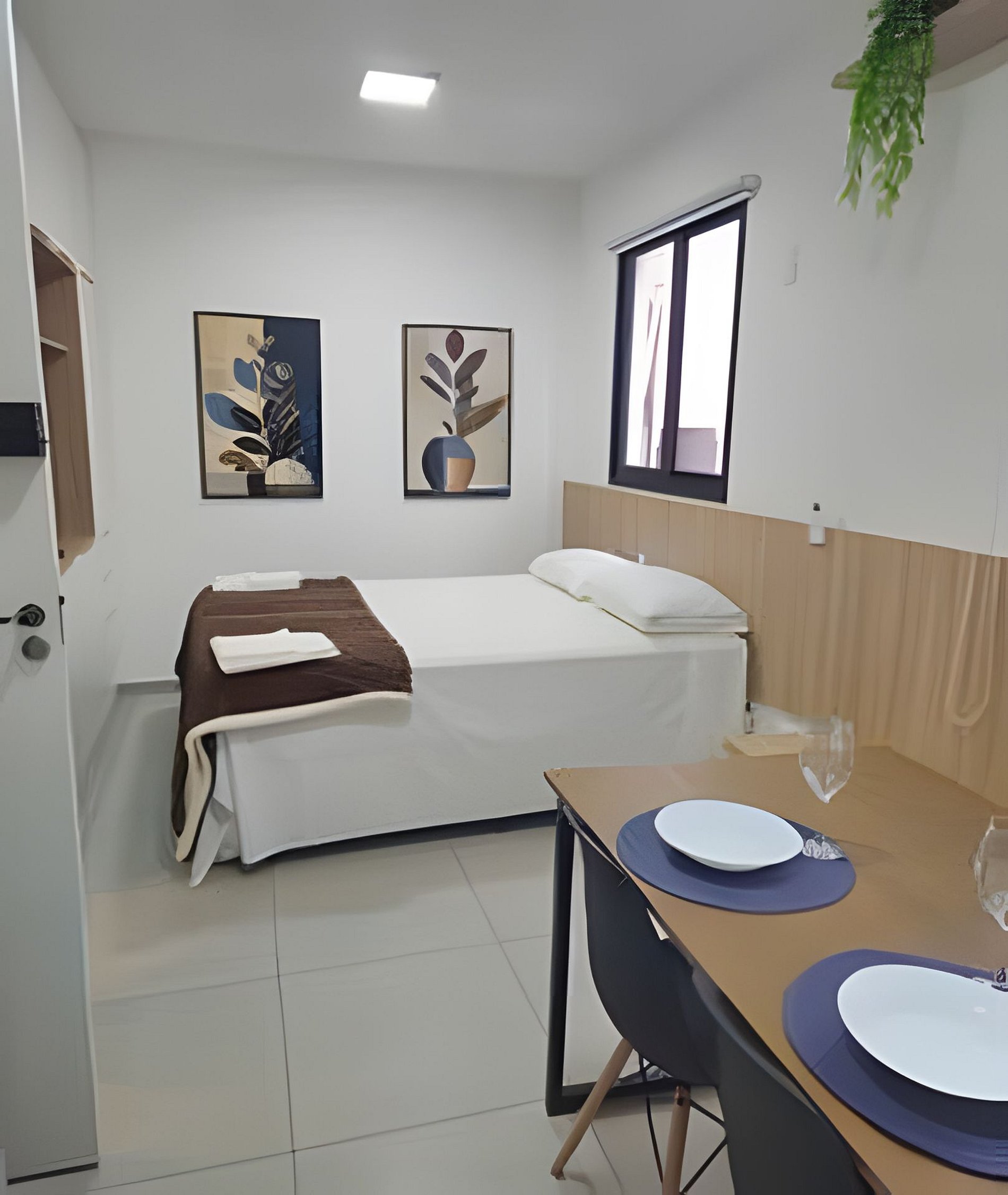 Estúdio privativo, funcional e bem distribuído, equipado com: