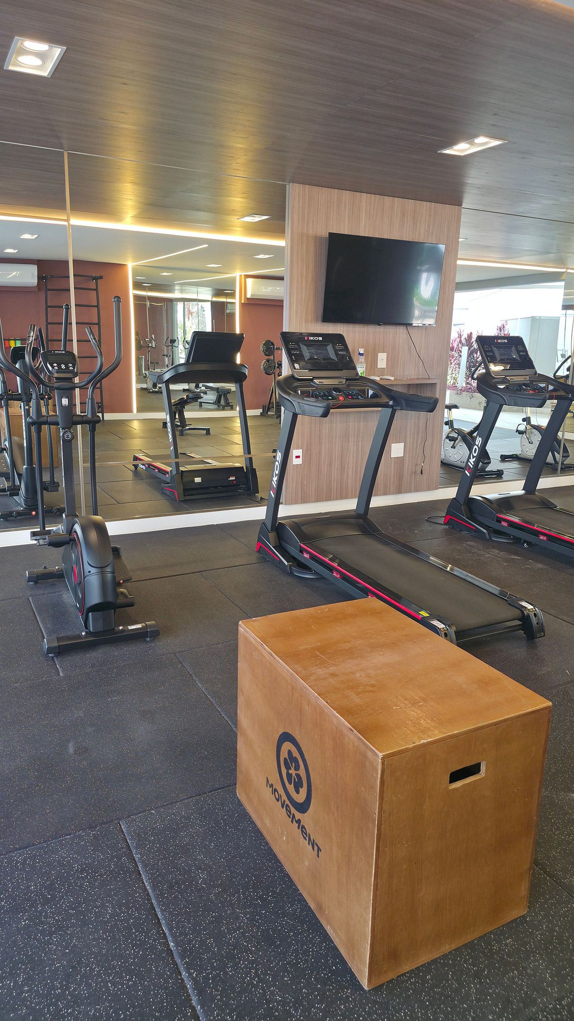 O ambiente possui uma sala aconchegante, equipada com Smart TV, ar-condicionado e sofá-cama. A área de jantar acomoda até 4 pessoas. A cozinha é totalmente equipada, contando com fogão, micro-ondas, geladeira frost free, eletrodomésticos e utensílios essenciais.